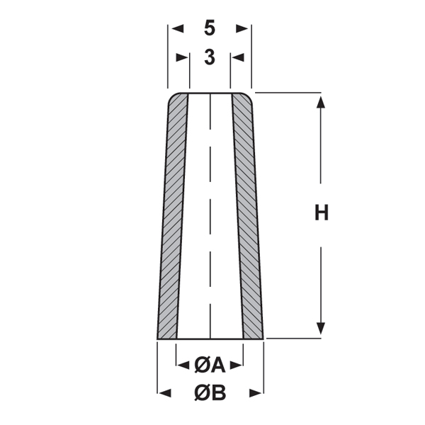 ARTICOLO | materiale | ØA mm | ØB mm | ØG mm | H mm | confezione pz. |