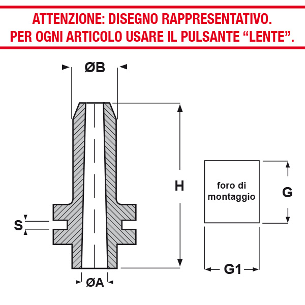 ARTICOLO | materiale | ØA mm | ØB mm | G mm | G1 mm | H mm | S mm | confezione pz. | |