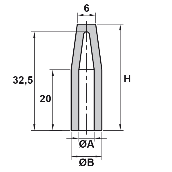 ARTICOLO | ØA mm | ØB mm | H mm | confezione pz. |
