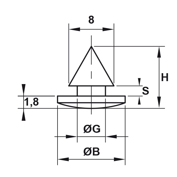ARTICOLO | ØB mm | ØG mm | H mm | S mm | confezione pz. |