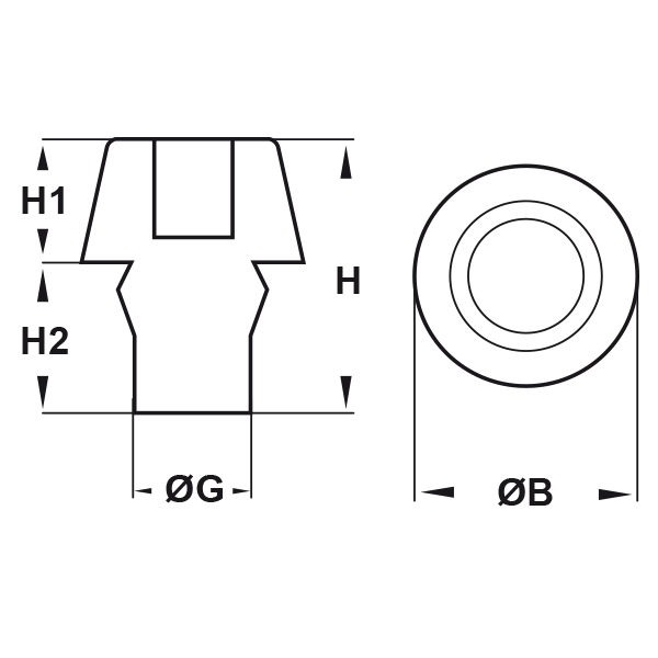 ARTICOLO | colore | ØB mm | ØG mm | H mm | H1 mm | H2 mm | confezione pz. | |