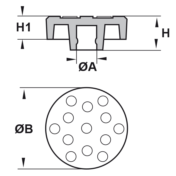 ARTICOLO | ØA mm | ØB mm | H mm | H1 mm | confezione pz. |
