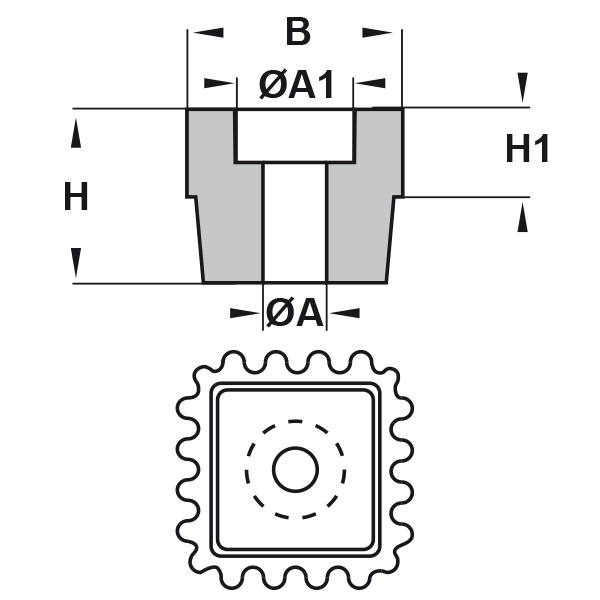 ARTICOLO | ØA mm | ØA1 mm | B mm | H mm | H1 mm | confezione pz. | |