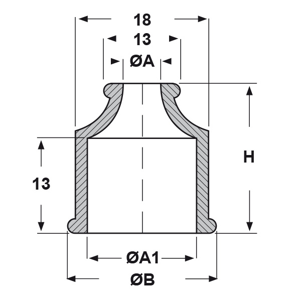 ARTICOLO | materiale | ØA mm | ØA1 mm | ØB mm | H mm | confezione pz. |