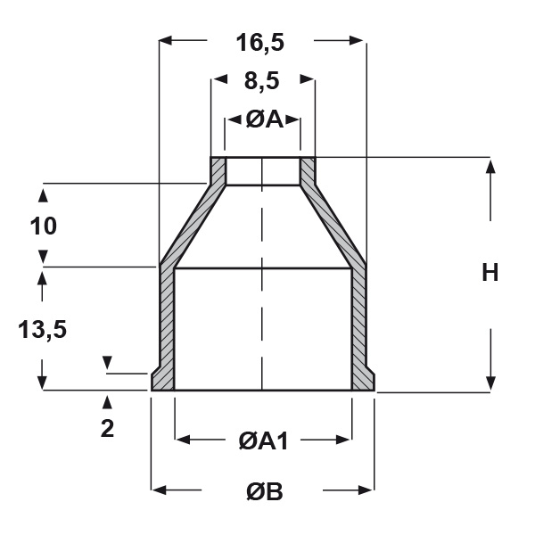 ARTICOLO | materiale | ØA mm | ØA1 mm | ØB mm | H mm | confezione pz. |