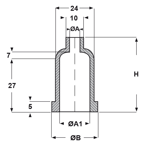ARTICOLO | materiale | ØA mm | ØA1 mm | ØB mm | H mm | confezione pz. |