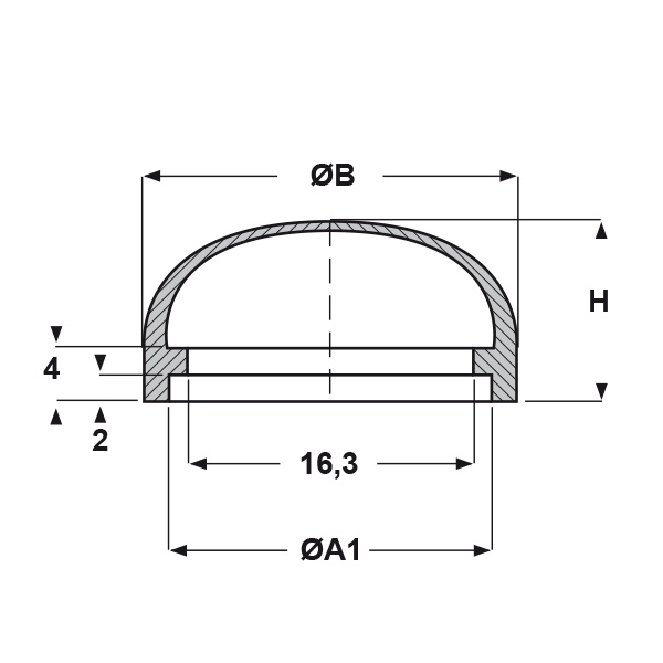 ARTICOLO | materiale | ØA mm | ØA1 mm | ØB mm | H mm | confezione pz. |