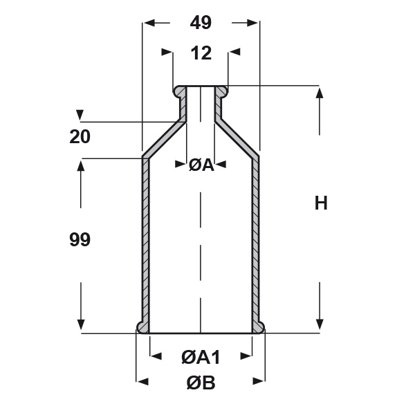 ARTICOLO | materiale | ØA mm | ØA1 mm | ØB mm | H mm | confezione pz. |