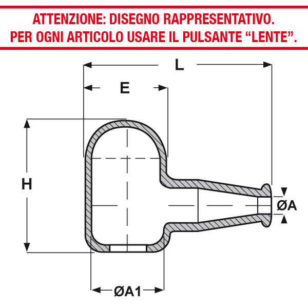 ARTICOLO | ØA mm | ØA1 mm | H mm | E mm | L mm | confezione pz. | |