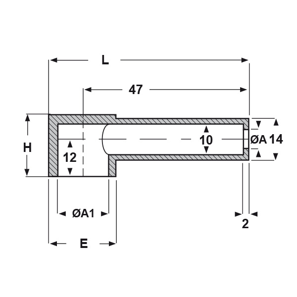 ARTICOLO | ØA mm | ØA1 mm | H mm | E mm | L mm | confezione pz. |