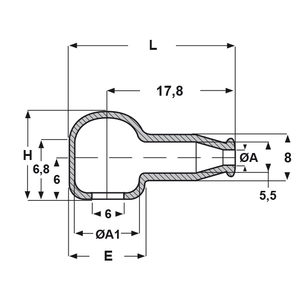 ARTICOLO | ØA mm | ØA1 mm | H mm | E mm | L mm | confezione pz. |