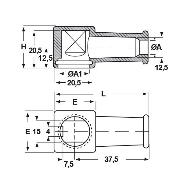ARTICOLO | ØA mm | ØA1 mm | H mm | E mm | L mm | confezione pz. |