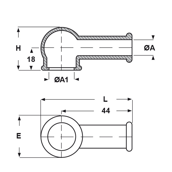 ARTICOLO | ØA mm | ØA1 mm | H mm | E mm | L mm | confezione pz. |