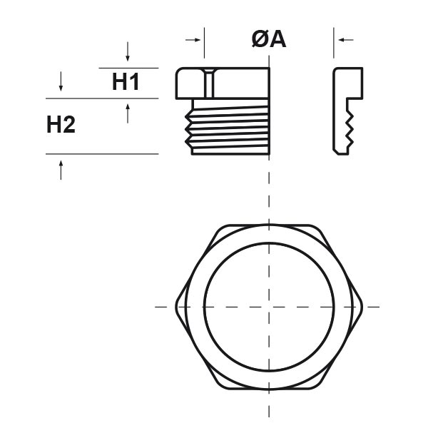 ARTICOLO | filetto passo | filetto valore | chiave mm | ØA mm | H1 mm | H2 mm | confezione pz. |