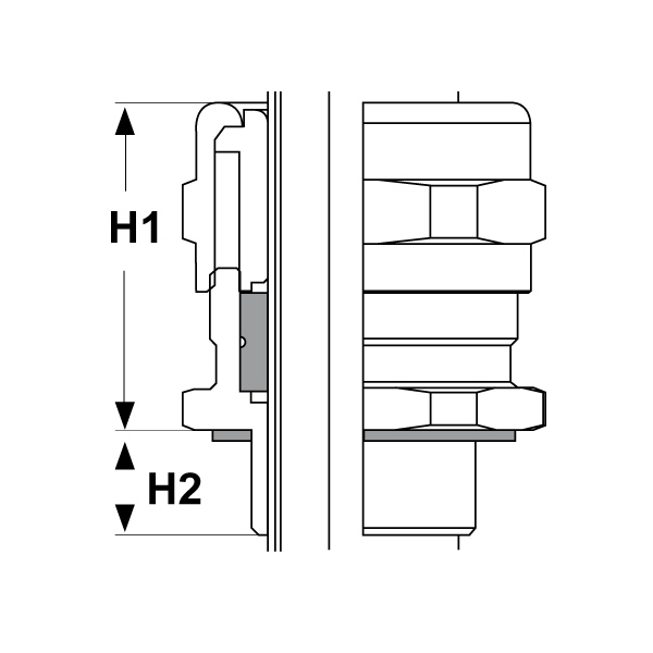 ARTICOLO | filetto passo | filetto valore | Ø est. cavo min - max mm | chiave mm | H1 mm | H2 mm | misura pressacavo | confezione pz. | |