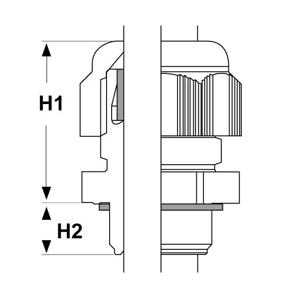ARTICOLO | colore | filetto passo | filetto valore | Ø est. cavo min - max mm | chiave mm | H1 mm | H2 mm | confezione pz. |
