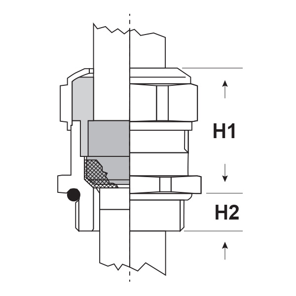 ARTICOLO | filetto passo | filetto valore | Ø est. cavo min - max mm | chiave mm | H1 mm | H2 mm | confezione pz. | |