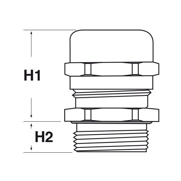 ARTICOLO | filetto passo | filetto valore | Ø est. cavo min - max mm | Ø est. calza min - max mm | chiave mm | H1 mm | H2 mm | confezione pz. | |