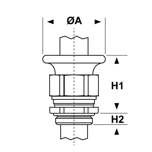 ARTICOLO | filetto passo | filetto valore | Ø est. cavo min - max mm | chiave mm | ØA mm | H1 mm | H2 mm | confezione pz. | |