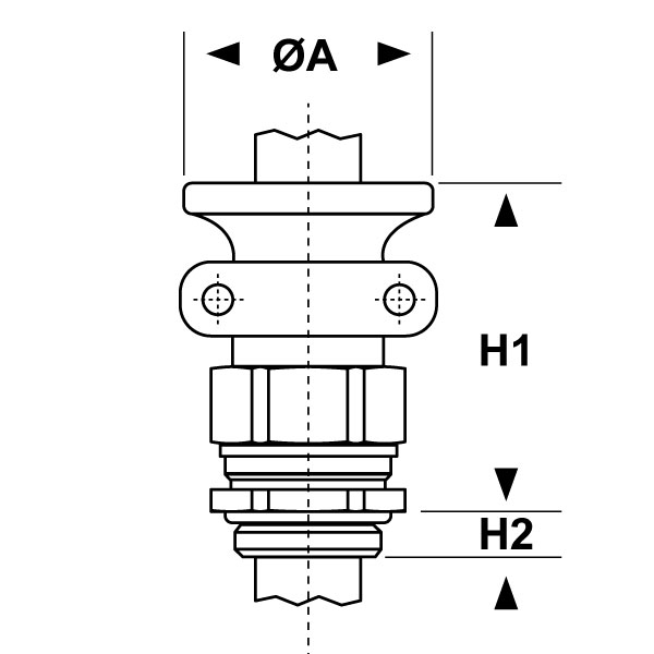 ARTICOLO | filetto passo | filetto valore | Ø est. cavo min - max mm | chiave mm | ØA mm | H1 mm | H2 mm | confezione pz. | |