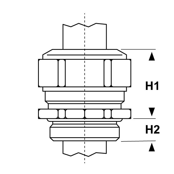 ARTICOLO | filetto passo | filetto valore | Ø est. cavo max mm | chiave mm | H1 mm | H2 mm | confezione pz. | |