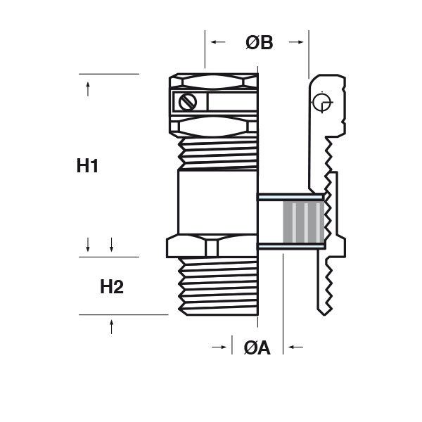 ARTICOLO | filetto passo | filetto valore | chiave mm | ØA est. cavo min - max mm | ØB min - max mm | H1 mm | H2 mm | confezione pz. | |