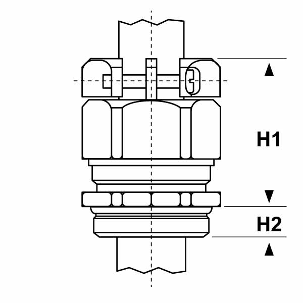 ARTICOLO | guarnizione | filetto passo | filetto valore | Ø est. cavo min - max mm | chiave mm | H1 mm | H2 mm | confezione pz. | |