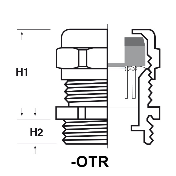 ARTICOLO | guarnizione | filetto passo | filetto valore | Ø est. cavo min - max mm | chiave mm | H1 mm | H2 mm | confezione pz. |
