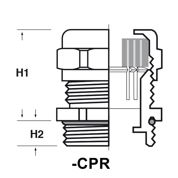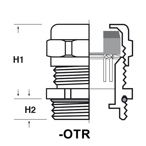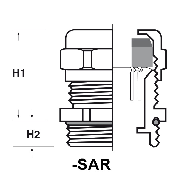 ARTICOLO | guarnizione | filetto passo | filetto valore | Ø est. cavo min - max mm | chiave mm | H1 mm | H2 mm | confezione pz. |