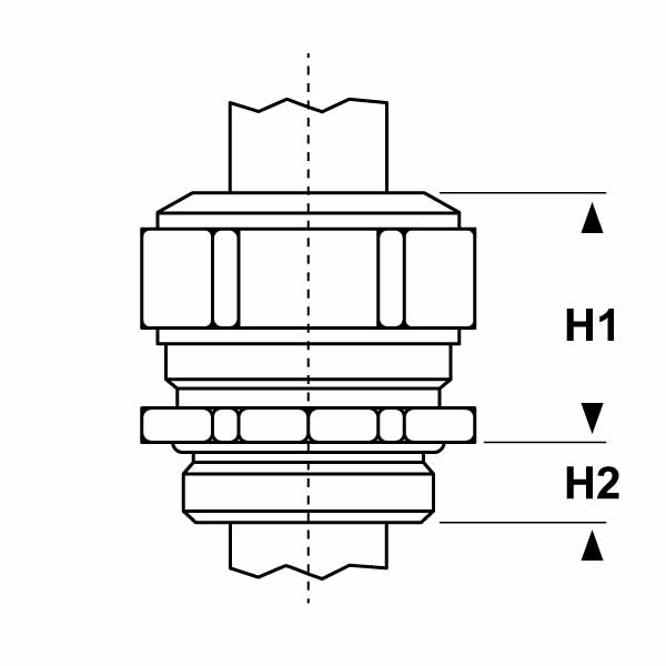 ARTICOLO | guarnizione | filetto passo | filetto valore | Ø est. cavo min - max mm | chiave mm | H1 mm | H2 mm | confezione pz. |