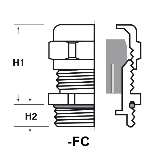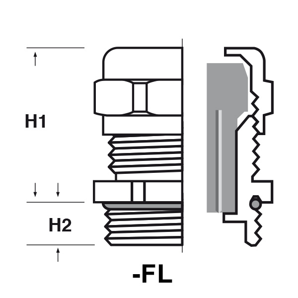 ARTICOLO | guarnizione | filetto passo | filetto valore | Ø est. cavo min - max mm | chiave mm | H1 mm | H2 mm | confezione pz. |