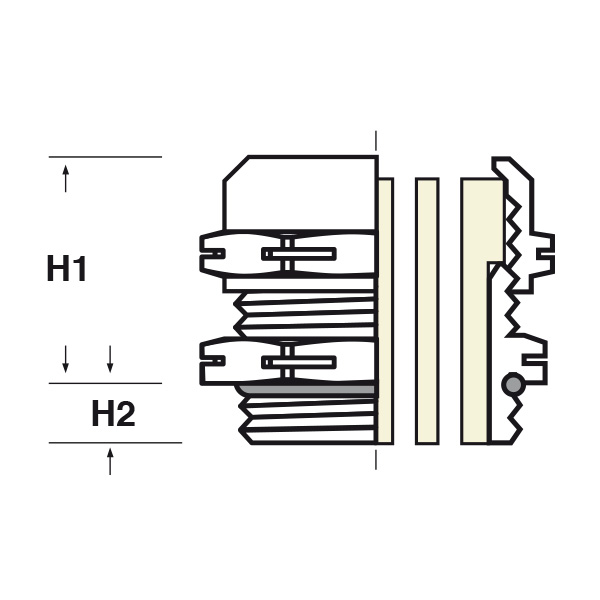 ARTICOLO | filetto passo | filetto valore | n. fori | Ø est. cavo min - max mm | chiave mm | H1 mm | H2 mm | confezione pz. | |