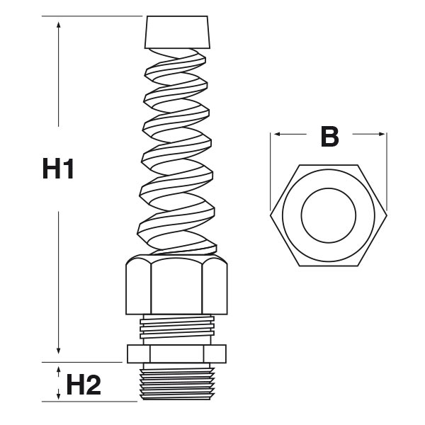 ARTICOLO | colore | filetto passo | filetto valore | Ø est. cavo min - max mm | chiave mm | B mm | H1 mm | H2 mm | confezione pz. |