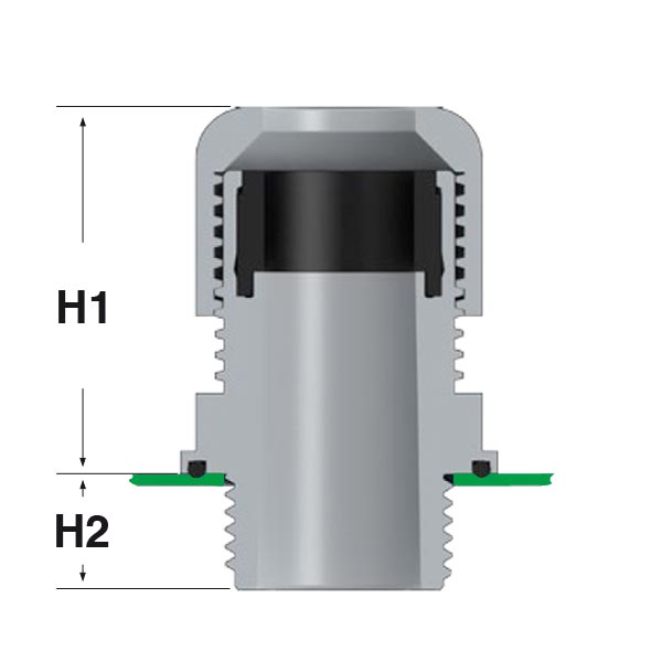 ARTICOLO | colore | filetto passo | filetto valore | Ø est. cavo min - max mm | chiave mm | H1 mm | H2 mm | confezione pz. | |