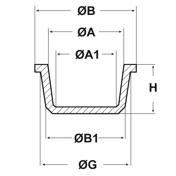 ARTICOLO | ØG mm | ØA mm | ØA1 mm | ØB mm | ØB1 mm | H mm | confezione pz. | |