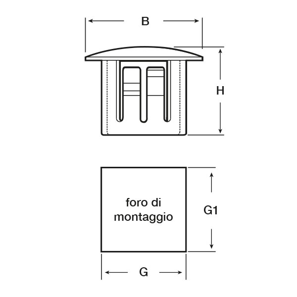 ARTICOLO | G mm | G1 mm | spessore telaio max mm | B mm | H mm | confezione pz. | |