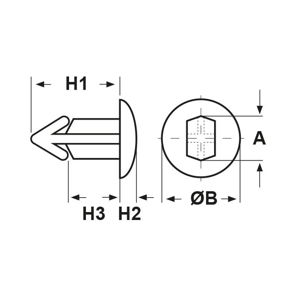 ARTICOLO | Ø foro montaggio mm | A mm | ØB mm | H1 mm | H2 mm | H3 mm | confezione pz. |