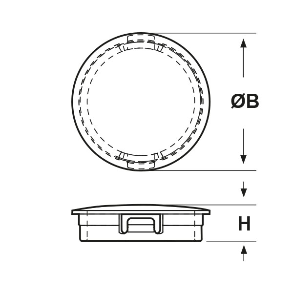 ARTICOLO | Ø foro montaggio mm | spessore telaio max mm | ØB mm | H mm | confezione pz. | |