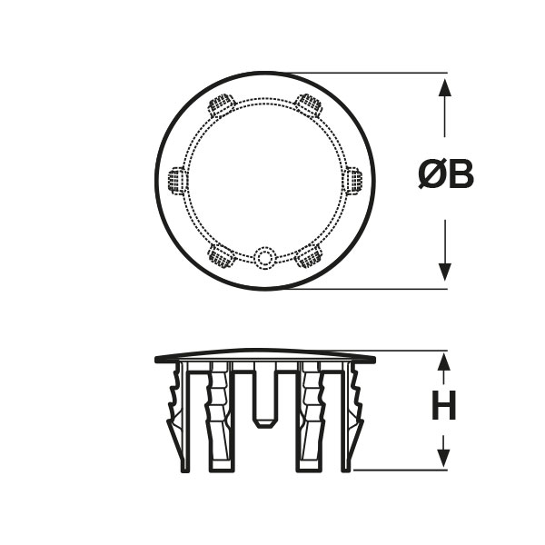ARTICOLO | colore | Ø foro montaggio mm | ØB mm | H mm | confezione pz. | |