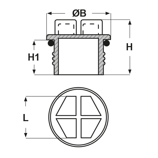 ARTICOLO | ØB mm | H mm | H1 mm | L mm | adatto a filetto UNF | confezione pz. | |