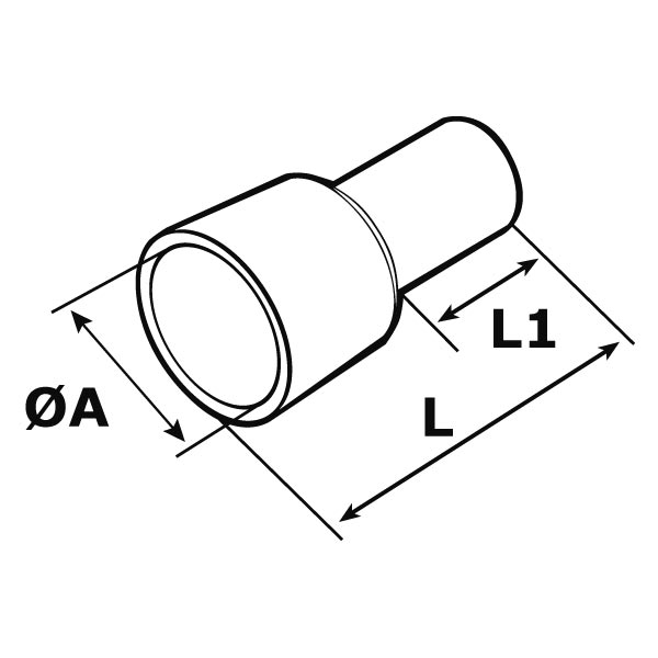 ARTICOLO | sezione mm2 | sezione AWG | ØA mm | L mm | L1 mm | materiale isolamento | confezione pz. |