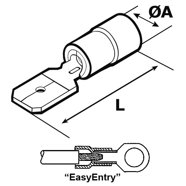 ARTICOLO | colore Isolamento | sezione mm2 | sezione AWG | linguetta faston | ØA mm | L mm | materiale isolamento | confezione pz. |