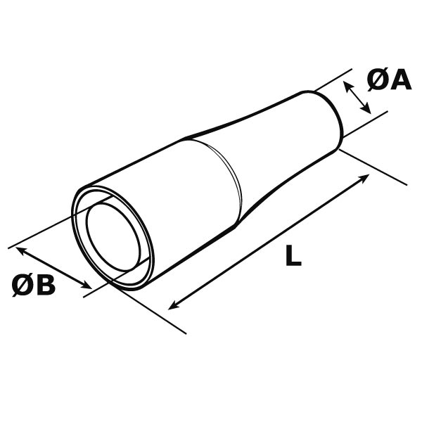 ARTICOLO | colore Isolamento | sezione mm2 | sezione AWG | ØA mm | ØB mm | L mm | materiale isolamento | confezione pz. |