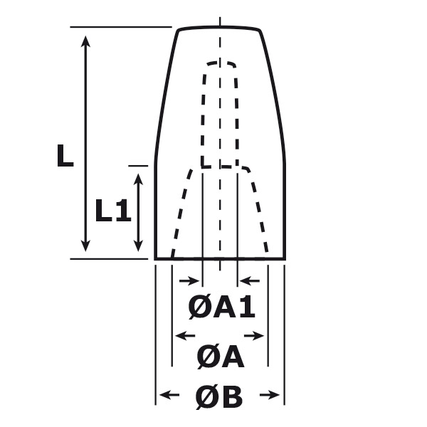 ARTICOLO | colore Isolamento | sezione mm2 | sezione AWG | resistenza dielettrica | ØA mm | ØA1 mm | ØB mm | L mm | L1 mm | confezione pz. |