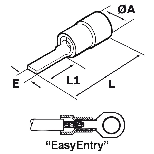 ARTICOLO | colore Isolamento | sezione mm2 | sezione AWG | ØA mm | E mm | L mm | L1 mm | confezione pz. |