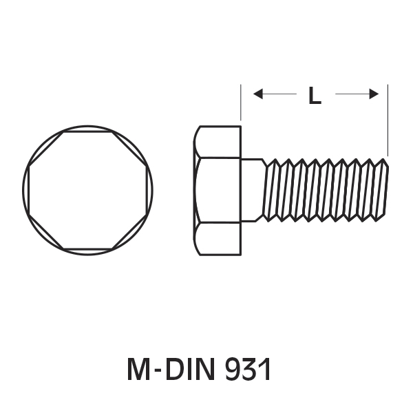| M-DIN 931 M6x45 | DIN 931 | Metrico | 6 | 45 | 500 | |